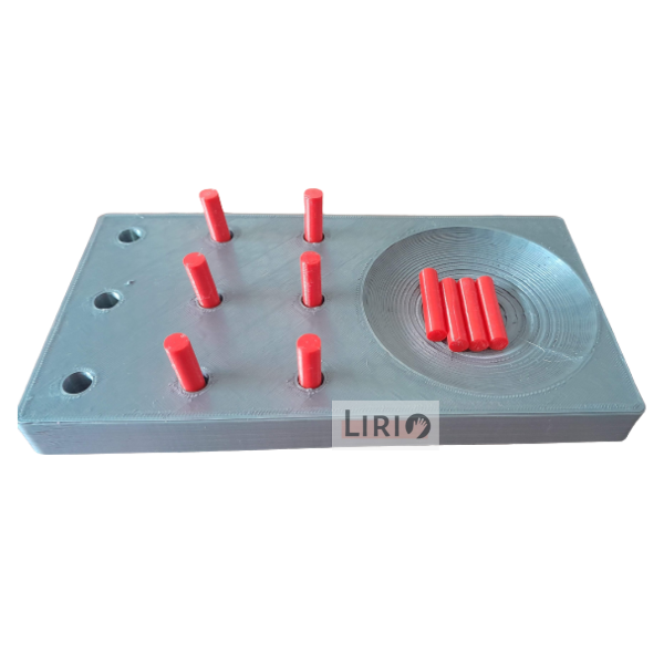El test consiste en cronometrar el tiempo en que la persona coloca y quita 9 fichas una vez con cada mano.