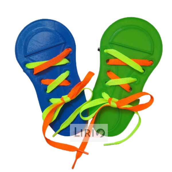 Ayuda a distinguir e identificar visualmente cada cordon para hacer las vueltas y aprender a atarselos mas fácilmente.