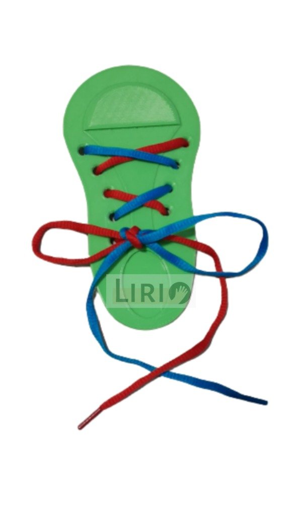Zapatilla con hojales y cordones de colores para entrenar el atado y el enhebrado